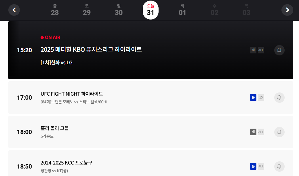 현재는 tvN SPORTS 공식 홈페이지 또는 CJ ENM 계열 OTT 플랫폼을 통해 편성표 및 중계 확인이 가능합니다.